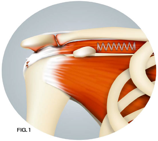 Minimally invasive techniques have been developed to repair the rotator cuff and remove bone spurs. A fiberoptic camera is introduced into the shoulder joint through a small puncture (portal). Through a second working portal, the surgeon uses instruments to place anchors into the bone.